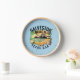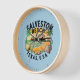 Stilvolle Wanduhr mit einer Retro-Vignette des Galveston Beach, TX Ufer. Erhältlich auf einer Vielzahl von Kleidung und Accessoires.