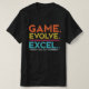 Dieser T - Shirt enthält die motivierend Phrase Game, Evolve, Excel in einem fett-mehrfarbigen Design. Jedes Wort ist eine andere lebendige Farbe, die ein dynamisches und auffälliges Aussehen schafft. Der Gesamtstil ist sauber und puristisch, lassend auf der bunten Bühne des Textes.