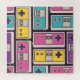 Nahtloses Muster mit Spieljoysticks. Farbige Abbildung Vintag. Dekorative Tapete, gut zum Drucken. Überschneidende Dekoration mit persönlichem Retrogerät für Gaming Erhöhen Sie Ihre Dekoration mit diesem Vintagen Joystick-Muster für verschiedene Anwendungen. Vintage Spieljoysticks in Farbe - eine Spielreise in Pixel. Gamer, Videospiel, Controller, Illustration, 90er, Spaß, Hintergrund, Poster, Computer, Dekor, farbig, abstrakt, Textur, Technik, Vintag, Cartoon, mobil, blau, Stoff, rosa