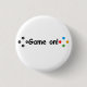 Game On! Button Dieser Button hat das Logo "Game On!" mit den Tasten eines Reglers auf beiden Seiten des Textes. Dieses Bild ist in Rund und Quadrat und in verschiedenen Größen erhältlich. Das Logo ist ein digitales Design.