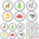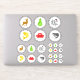 Aufkleber Blatt von Fisch Gewürzkrebskrebs Würfel Spielkomponenten. Dieses Aufkleberblatt weist die folgenden Designs auf: Roter Krabbengarn mit weißem Hahn, gelber Hirsch, grüner Gourmet