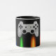 Gamer Video Game Controller Neon Colors Black Tasse. Gaming-Controller auf einem lebhaften bunten Neonlicht auf schwarzem Hintergrund. Ideal für einen echten Spieler.