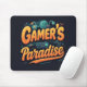 Ein lebendiges und nostalgisches Grafikdesign mit dem Text "Gamer's Paradise" in einem verspielten, pixeligen Schriftart, der an klassische Videospiele erinnert. Das Design umfasst Abenteuer- und Erkundungselemente mit einer Farbpalette, die Gefühle der Begeisterung und Nostalgie hervorruft. Die Gesamtkomposition ist dynamisch und einladend, für Spieler jeden Alters attraktiv.
