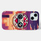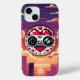 Dieses Handy-Gehäuse im Pixelart-Stil zeichnet sich durch ein nostalgisches Gaming-Thema aus. Ein Videospielcontroller im Retro-Stil wird in der Mitte sichtbar angezeigt, umgeben von einem Ring von verpixelten Herzen. Der Regler sitzt vor einem Hintergrund eines pulsierenden Sonnenuntergangs über einem futuristischen Stadtbild mit mächtigen Wolkenkratzern und einem pixeligen Ozean. Die Wörter "PRESS START" werden auf dem Controller eingetragen und ergänzen die Spielästhetik.