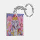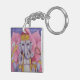 Ein Schlüsselanhänger mit meinem 18" quadratischen AquarellBleistift-Gemälde von Ganesh. Ganesh ist ein hinduistischer Gott. Er ist der Wegweiser von Hindernissen, Förderer von Kunst und Wissenschaft, der Fürst von Intellekt und Weisheit, der Gott der Anfänge und Förderer von Buchstaben und Lernen. Er hält seinen eigenen gebrochenen Schwanz in seiner rechten unteren Hand und hält eine Delikatesse in seiner links unteren Hand. In einem Oberarm hält er eine Axt und im anderen Oberarm eine Schlinge. Ich habe ihn vor einer rosa Lotus-Blume gesetzt, als Teil eines Sinnes für neue Anfänge, die sich entfalten.
