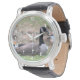 Uhr, Vintage Männeruhr mit schwarzem Lederarmband