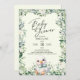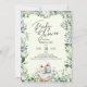 Schöne Baby Dusche Einladung mit bezaubernden Baby Gänse / Gängen umgeben von Aquarell Grün und Blumen. Hübsche handgeschriebene Schrift für Baby Shower ist perfekt für diese genderneutrale Einladung. Koordination zurück. Sehen Sie die Koordination der Artikel in unserem Shop, Verzauberte Finch.