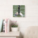 Uhr, die eine Gans darstellt, die zum Schwimmen geht