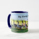 Diese niedliche Tasse zeigt mein Originalfoto von Gänse-Ansammlung an einem See. Ich verarbeitete mein Foto mit einem illustrierten Stil für einen künstlerischen Flair. Der Griff und die Innenseite der Tasse sind blau, um das Kunstwerk zu ergänzen. Die Worte "Meine Meeting-Tasse" stehen auch an vorderster Front für einen niedlichen Einstieg in die Ansammlung. Die Wörter können in Ihre Vorliebe geändert werden, um sie zu personalisieren. Das sind 11-Unzen-Tasse, die perfekte Größe für Ihre Zuhause-Braukaffee oder Tee - oder sogar heiße Schokolade! Es würde ein großartiges Geschenk machen und man kann Kaffee, Teebeutel oder heiße Schokolade hineinstecken. Eine andere Geschenkidee ist es, ein wenig Pflanze hineinzustecken, um es besonders für Ihren Liebsten zu machen. Ein tolles Geschenk für Naturliebhaber, Vogelliebhaber oder jemanden, der viele Treffen hat.