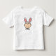 Un mignon t-shirt de Pâques avec un garçon brun vêtu comme un lapin de Pâques sur un vêtement de Pâques personnalisable.