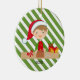 C'est un ornement adorable de Noël. Grand pour un cadeau ou vous-même. Il a un arrière - plan rayé vert et blanc. Au centre est en ligne un elfe adorable avec des cheveux bruns et un casquette rouge de Père Noël avec une chemise rouge et verte. Il travaille à une table. Personnalisez avec l'année. Ce sera un souvenir pour beaucoup, beaucoup d'années à venir avec des présents autour de lui. Vérifiez les nombreuses autres conceptions que nous avons. Illustrations du © JW