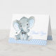 Un baby shower d'éléphant vous remercie des cartes avec l'adorable petit éléphant portant une cravate arc sur un arrière - plan de pois bleu. Ces cartes de remerciement pour les éléphants mignons peuvent être customisées avec votre message imprimé à l'intérieur, ou laissez-les en blanc pour votre message manuscrit.
