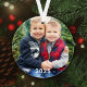 Photo ornament design pour les fêtes présente votre image préférée avec le texte de l'année en blanc (peut être customisé) avec le motif plaid de buffle rouge et noir sur le dos. Personnalisez le texte personnalisé "Joyeux Noël" sur le dos ou retirez. Conseil photo : recadrez la photo au format carré avant de la télécharger sur le modèle design. Crédit photo : Two Fish Photography www.twofishphoto.com