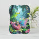 Ein winziges Mädchen und ein Schmetterling mit riesenhaften Flügeln, auf einer riesigen Blume in einem üppigen Dschungel, begleitet von einem bunten Toucan. Große Blätter und lebendige Blume umgeben sie und schaffen eine magische, skurrile Szene. Digitale Kunstfotografie CS6