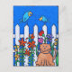 Katze den Garten Gnome mit einem Chat mit einigen ahnungslosen Bluebirds.