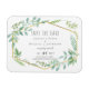 Hübsches Aquarell-Grün, Salbei-Blätter mit goldgeometrischer Rahmen auf diesem modernen Hochzeitsgegenstand. Teil einer größeren Budget Hochzeitskollektion, die Einladungen, Save the Date, uAwg mit Menüoptionen, Etiketten für Favoriten und Geschenke und Umschläge, Brautparty lädt und mehr beinhaltet.