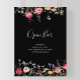 Dieses bunte Hochzeitszeichen der Wildblume, das ein offenes Bar darstellt, ist perfekt für eine rustikale Hochzeit. Das Design umfasst eine bunte Auswahl an rosa, rot, lila, gelb, weiß, violett, rot, bordeauxfarbenen Blume in schwarzem Hintergrund.