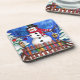 Original Aquarellmalerei von Sandra Gale eines Schneemanns, der vor einem Picketzaun stehend ist, mit leuchtenden Weihnachtslichtern, die den Winterschnee abstrahlen. Vögel, Vogelhäuser und Weihnachtsschmuck machen das zu einer klassischen Weihnachtslandschaft, die auf Papier, Weihnachtskarten und vielem mehr großartig aussieht!