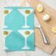 Ceci les gardent les prochaines caractéristiques de serviette de cuisine de Martini un arrière - plan de turquoise et l'image carrelée d'une silhouette blanche d'un verre de martini. À l'intérieur de chaque verre est une olive verte glorieuse avec un piment orange. C'est une serviette de cuisine d'amusement pour chacun qui souhaite qu'ils aient été un caractère dans un film classique. Secoué non remué, svp !