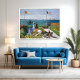 Monet verbrachte den Sommer 1867 mit seiner Familie in Sainte-Adresse, einem Badeort in der Nähe von Le Havre. Dort malte er diese lebhafte, sonnenbeleuchtete Szene zeitgenössischer Freizeit, indem er seinen Vater (in einem Panamahut gezeigt) und andere Verwandte als Modelle einnannte.