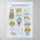 Brighed Ihr rustikales Bauernhaus mit diesem Sonnenblumengartenwerkzeug Poster! Mit Aquarellbildern von gelben Sonnenblumen, getöpften Pflanze und Gartenessenziellen auf blauem Hintergrund für Frühling und Sommer Charme.