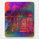 Diese digitale Montage wurde vom Mischen mehrere meiner photographischen Bilder hergestellt: ein von hinten beleuchtetes Buntglasfenster schoss durch ein Mausoleumsfenster; Wolken geschossen von einem Flugzeug; Eiskristallbildungen auf meinem Fenster. Ich genieße, mit Bereichs- u. Farbauswahl in Photoshop spontan zu experimentieren, um serendipitous Ergebnisse zu schaffen.