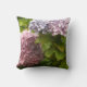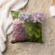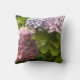 Schöne sonnige Hydrangeas in voller Blüte Akzent dieses Kissen. Mauve und hellrosa Blume, die durch ihr hellgrünes Blattwerk hervorgehoben werden.
