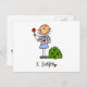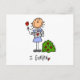 Eine Strichmännchen-Gärtnerin und Textfrau, die auf Gartendesign-T - Shirt, Tasse, Karten, Aufklebern, Totentaschen, Sweatshirts und anderen Gartenbekleidung und -geschenke "I Garden" liest.
