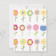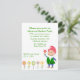 Bunte Party Einladung im Freien, mit Grafiken der hübschen kleinen Blumen, über der Unterseite und ein glücklicher Garten Gnome, auf der rechten Unterseite. Personifizieren Sie den grünen Text für Ihr Ereignis.