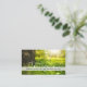 Visitenkarte mit Frühlingsblumen in der Sonne mit einem Baum. Wunderschön für ein Unternehmen, das Gartenarbeit, Landschaftsgestaltung, Rasen-Service, Bodenpflege oder Landschaftsarchitektur-Dienstleistungen anbietet.
