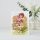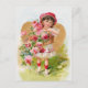 Kleiner Vintager Gärtner in weißem Sommerkleid mit einem Korb voller rote Rosen. Leichte, fröhliche romantische antike Grafik .Höflichkeit von cassandra204 .
