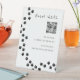 Gast-WiFi-Informationszeichen, mit einem Pfotenpfad in schwarz und weiß. Fügen Sie Ihren eigenen personalisierten QR-Code, Netzwerk- und Wi-Fi-Details hinzu. Geeignet für den Tierarzt, Hundezüchter, Hundetagebetreuung, Zuhause oder Haustier freundliche Gäste, wie zum Beispiel Air bnb oder Vrbo.
