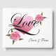Dieses Gästebuch wird in Weiß mit hübsch rosa Rosen und Liebe mit benutzerdefinierten Beispielnamen angezeigt. Passen Sie dieses Buch an und ändern Sie die Namen in Ihr Buch.