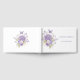 Dieses Gästebuch wird mit einem Lavendel Hydrangea-Blume-Bild mit einem rauchigen Amethystfarbtext gezeigt. Personalisierte Namen und Hochzeitsdatum auf der Vorderseite. Passen Sie dieses Element an, und ändern Sie die Beispielnamen und das Datum mit dieser Vorlage auf das Ihre. Lizenziertes Bild