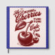 Dieses Design zeichnet sich durch eine spielerische, Vintage Kirschillustrierung in tiefen Rottönen aus, begleitet von einer kühnen Retro-Typografie. Im Text steht "Meine köstlichen Kirschen" oben mit einem lächelnden Kirschmaskott, zusammen mit lustigen Sätzen wie "Yumi Yumi" und "Niedliches Obst". Die großen, detaillierten Kirschen und Blätter verleihen ihm ein nostalgisches Plakatbild auf dem Obstmarkt, während das Gesamtbild Süße und Charme mit einer klassischen, handgezeichnet Ästhetik verbindet.