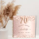 Ein Gästebuch für eine weibliche und glamouröse 70. Geburtstagsfeier. Eine stilvolle Rose Gold Imitate metallisch aussehend Hintergrund mit Imitate Glitzer Glitzern. Fügen Sie Ihren Namen, Text hinzu.