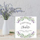 Ein stilvoller weißer Hintergrund mit lavendelfarbenen Blume und Eukalyptusgrün. Personalisieren Sie Ihren Namen und Text und fügen Sie ihn hinzu.