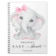 Ein Gästebuch mit Babydusche feiert ein kleines Mädchen. Ein stilvoller weißer Hintergrund mit einem niedlichen Elefanten. Fügen Sie einen Namen und ein Datum hinzu.