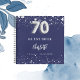 Ein klassischer, naby blauer Hintergrund, mit Sternen dekoriert. Personalisieren und einen Namen, Datum. Nummer 70 wird mit einem Schriftart im Ballonstil geschrieben.