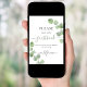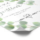 Ein weißer Hintergrund mit Eukalyptussprigs. Mit dem Text: Bitte unterschreiben Sie unser Gästebuch und verlass Ihre besten Wünsche für die neuen mr und mrs.