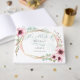 Gästebuch | Terrarienrahmen mit Frühlingsblumen in rosa und hellgrün Eukalyptus-Blätter rund um den Rahmen. Eine Kombination aus Skriptkalligraphie und einem minimalistischen, zeitgenössischen Text-Layout macht es zu einer trendigen Hochzeitssuite. Design erstellt für TheBarefootBride™ durch © WhimsicalArtwork™. Das ist Teil einer Sammlung von Hochzeitsartikeln mit passendem Hochzeitszubehör, Babydusche und anderen Veranstaltungsartikeln. Kontaktieren Sie uns, wenn Sie Hilfe benötigen.