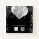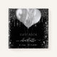 Ein stilvoller schwarzer Hintergrund mit Imitaten silberner Glitzer Tropfen und Staub. Mit lila Ballons dekoriert. Personalisieren und fügen Sie einen Namen, Alter und ein Datum ein. Der Name wird mit einem modernen handgeschriebenen Stilskript mit Swashes geschrieben. Um die Swashes behalten, löschen Sie nur den Beispielnamen, verlass die Leerzeichen oder Emoji's vor und nach dem Namen. Kann als Party Gästebuch, zur Planung des Party oder als Gastgeschenk verwendet werden.