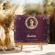 Burgundy Gradienten Hintergrund mit Imitaten goldenen Diamant Foto Rahmen. Imitate Rose Gold Glitzer. Personalisieren Sie und Ihr Foto, Name und Datum. Rose Goldfolie.