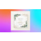 Eine weiße Hintergrundfarbe. Dekoriert mit Eukalyptusgrün, goldgelbem Blattwerk und Imitaten goldener Glitzer Staub. Geben Sie einen Namen, Alter und ein Datum ein.
