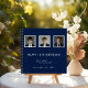 Ein stilvoller marineblauer Hintergrund. Für ihn und sie. Fügen Sie 3 Fotos, Alter, Name, Der Name ist mit einem modernen handgeschriebenen Stil Skript geschrieben.