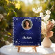 Ein marineblau, uneinheitlich farbiger Hintergrund mit Imitaten goldenen Foto Rahmen und Imitaten silbernen Glitzer. Personalisieren Sie und Ihr Foto, Name und Datum.