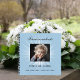 Ein Gästebuch für eine Gedenkfeier oder Beerdigung. Ein blauer Hintergrund mit weißen Strahlen, Balken hinter dem Foto. Personalisieren und Hinzufügen eines Fotos, Namens, Datums