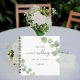 Eine weiße Hintergrundfarbe. Die Einrichtung ist mit eleganten, eukalyptusgrünen Kräuter geschmückt. Fügen Sie Ihre Namen und ein Datum hinzu.