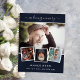Erstellen Sie Ihre eigene, einzigartige Collage aus Foto. Verwenden Sie vier, vier von Ihrem Lieblings-Foto. Mit dem Text: in liebevoller Erinnerung. Personalisieren und fügen Sie einen Namen und Daten hinzu. Dunkelblauer Hintergrund, weißer Text.