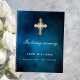 Ein Gästebuch für eine Gedenkfeier oder Beerdigung. Klassisch dunkelblauer Himmelshintergrund und goldenes Kreuz. Personalisieren und fügen Sie einen Namen und Daten hinzu. Weiße Buchstaben.
